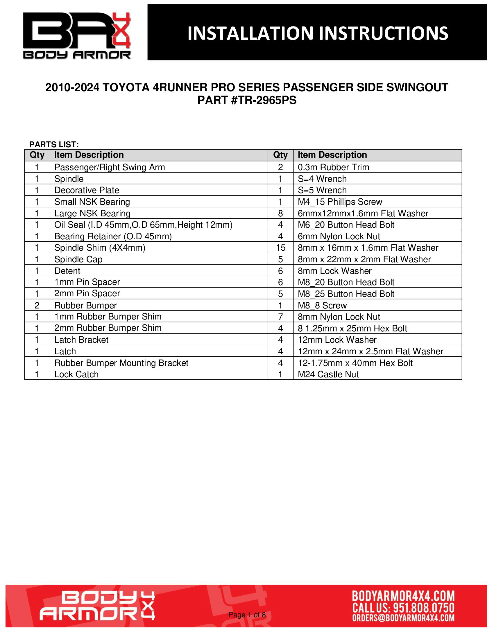 2010-2024 Toyota 4Runner Pro Series II Passenger Side Swingout