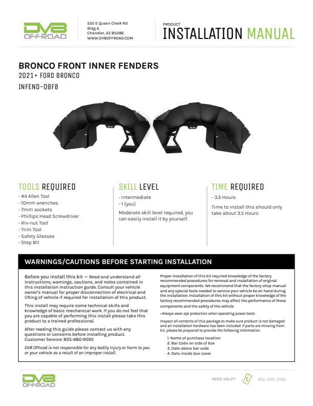 ** Please Note: The inner fenders are not compatible with the Bronco Raptor.