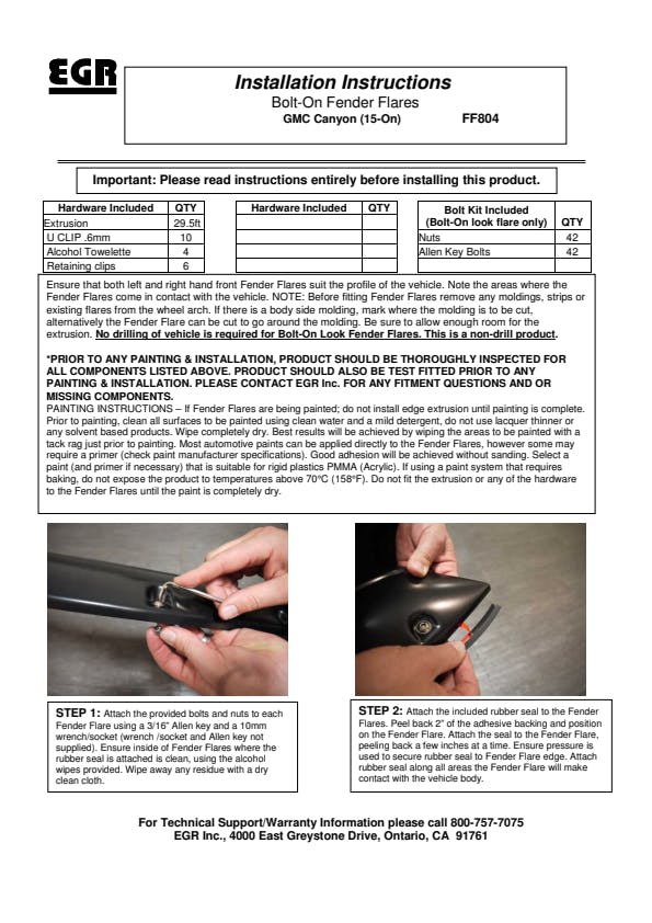 All EGR Fender Flares feature an easy, no-drill installation process; which will have you showing off your truck in no time. Don't get faded with the other guy's; EGR Fender Flares all feature a UV protectant film that will keep your flares looking new for years to come. When it comes to EGR, Premium Quality would be an understatement, it's the Standard!