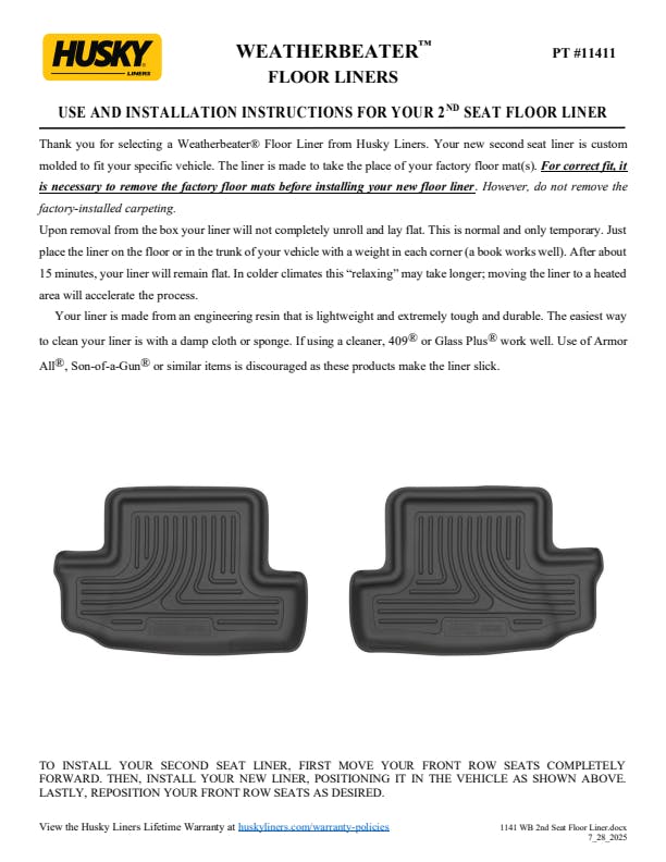 - WeatherBeater(TM) Liners offer protection that extends all the way to your rear seats. So go ahead, lift the seats and leave them up, load after load. Husky's got your floors, and your back, no matter what the road brings your way.