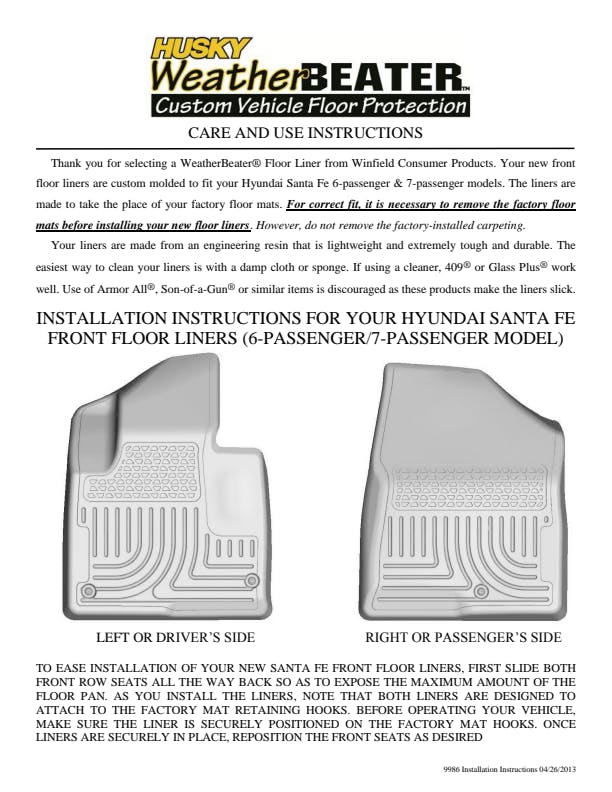 - WeatherBeater(TM) Liners offer protection that extends all the way to your rear seats. So go ahead, lift the seats and leave them up, load after load. Husky's got your floors, and your back, no matter what the road brings your way.