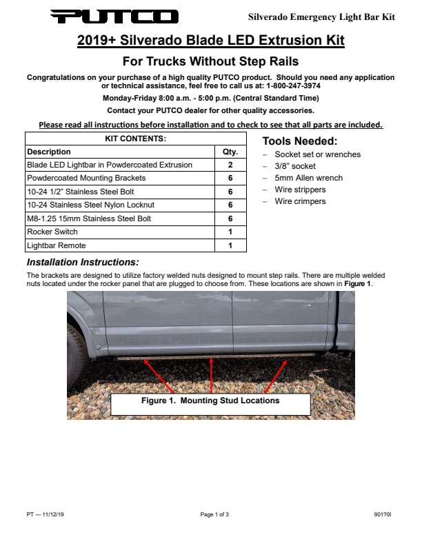 Putco E-Blade Sideliner LED Rocker Kit (Red, White & Blue LEDs) Fits Chevy Silverado/GMC Sierra 1500 2015-2026