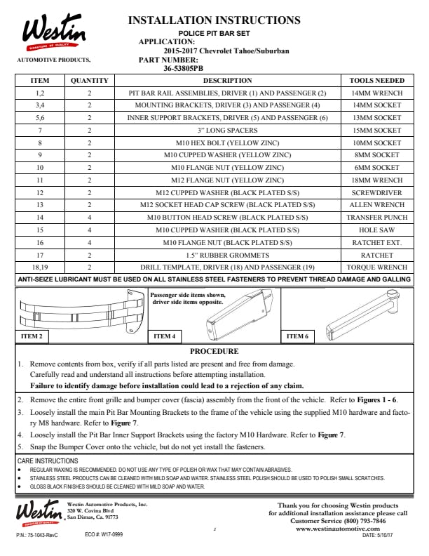 Tahoe/Suburban 2015-2019 (Excl. Suburban 2500)